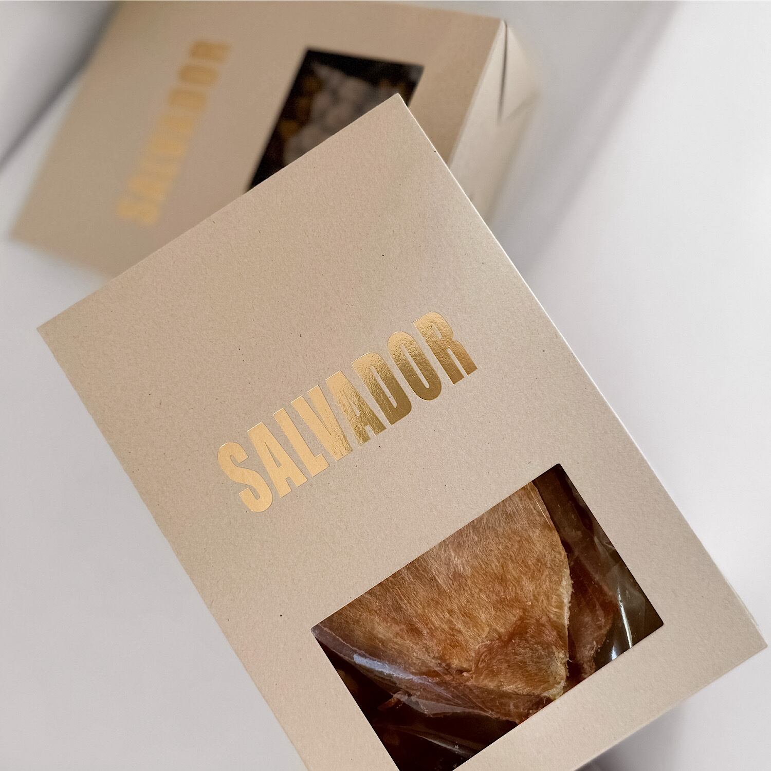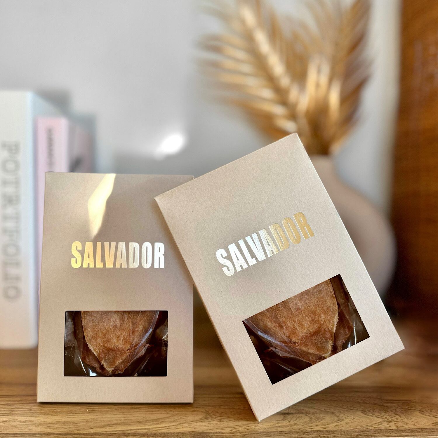背油部をカットし、赤身部分だけをじっくり天日干しした、ヘルシーでビタミンと旨味たっぷりの豚せんべい。