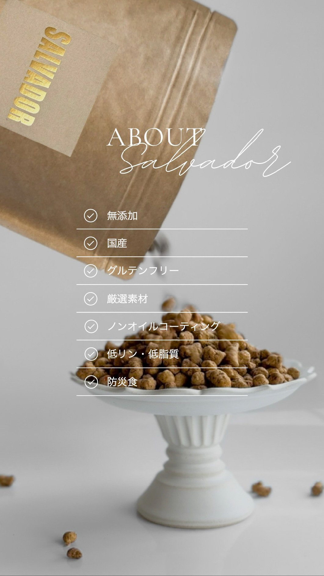 11種類の厳選素材の旨味をギュッと閉じ込めた完全無添加、国産、グルテンフリーのナチュラルフード『SALVADOR』